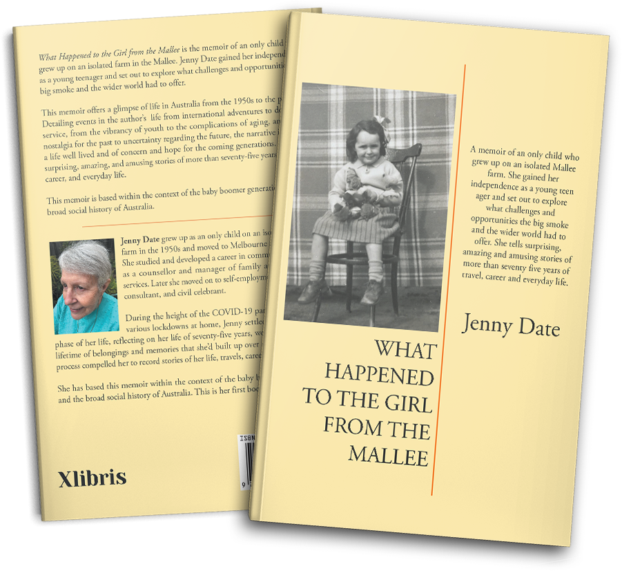 What Happened to the Girl from the Mallee is the memoir of an only child who grew up on an isolated farm in the Mallee. Jenny Date gained her independence as a young teenager and set out to explore what challenges and opportunities the big smoke and the wider world had to offer.